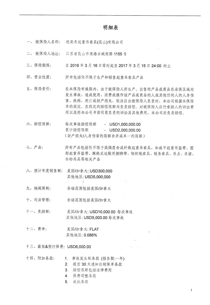 德國(guó)多來(lái)勁吊具太平洋保險(xiǎn)公司產(chǎn)品責(zé)任險(xiǎn)