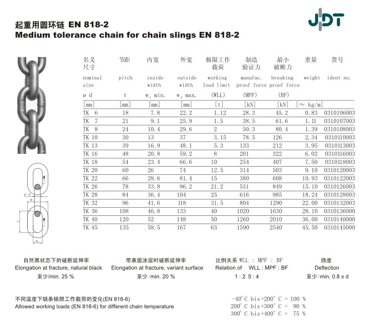 德國JDT80級(jí)起重鏈條NORM8級(jí)鏈條