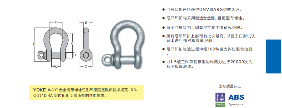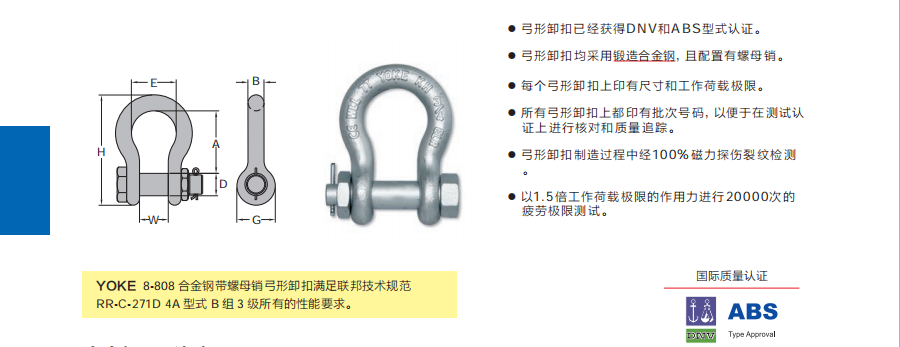 臺灣YOKE合金鋼弓形卸扣 ( 表面熱浸鋅處理 )